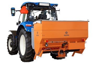 TP9 er en kompakt liftophængt spreder, som monteres på en landbrugstraktor. Salt og sand udlægges ved hjælp af Epokes spredeskive, og den kan uden brug af værktøj ændres til en valseudlægger.
